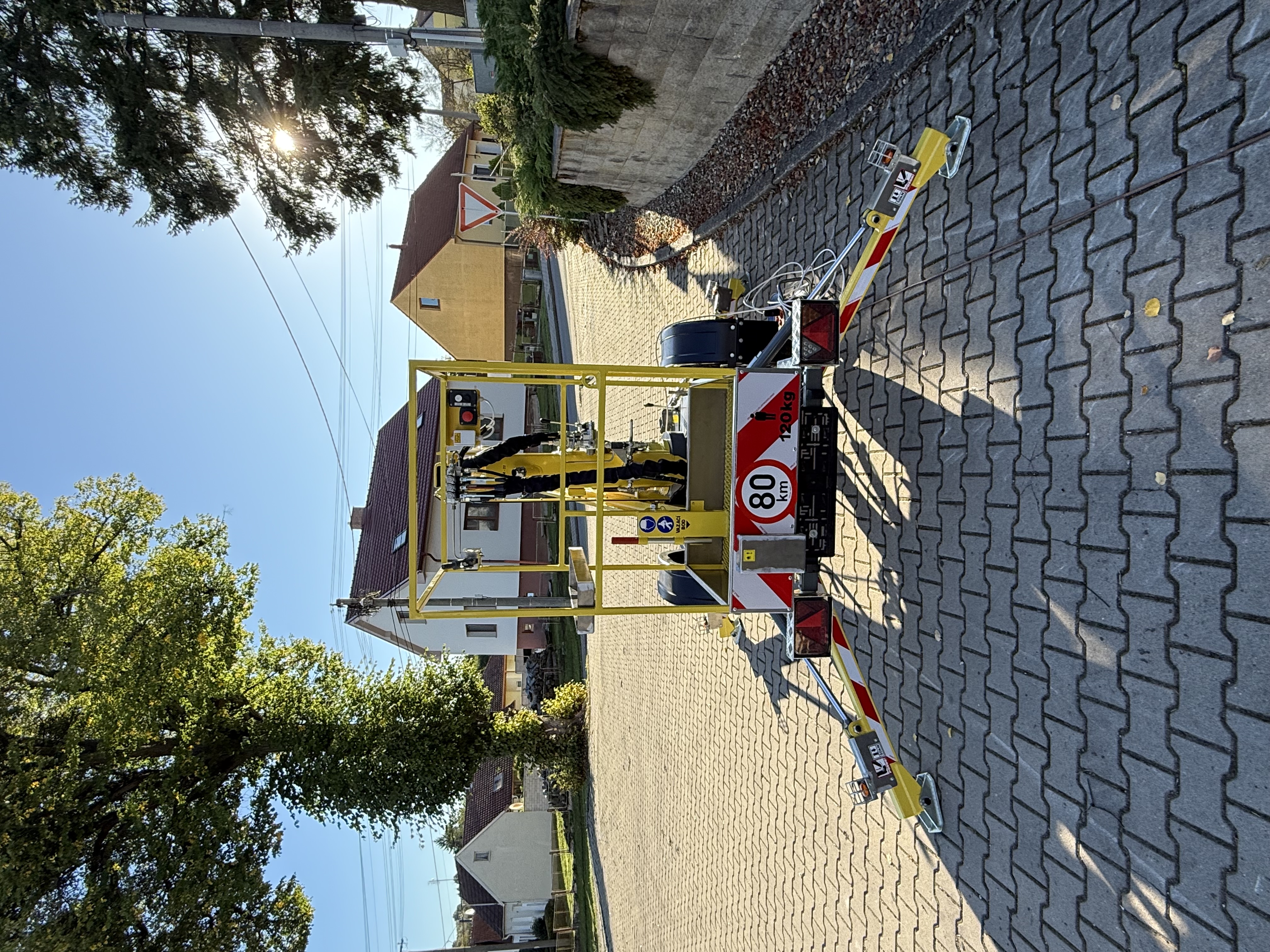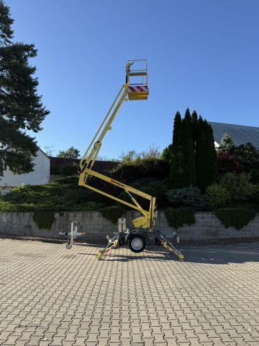 Táto plošina, dodaná v výraznej žltej farbe, je pripravená slúžiť predovšetkým pri opravách a údržbe budov.